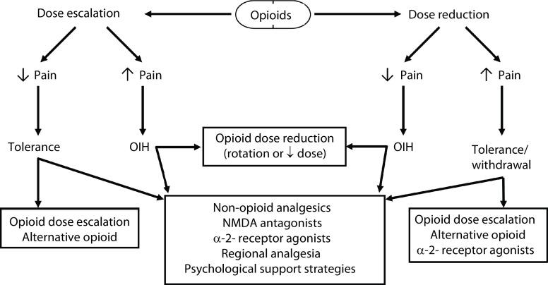 Effectiveness of high-dose opioids can be diminished by OIH and opioid tolerance – difficult to distinguish
